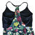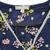 Cooles, dunkelblaues, weissgepunktetes Kleid von Johann UK in Gr.S/M mit tiefem Ausschnitt und Lederpatch als Vogel bei der rechten Schulter, kein Waschetikett, Gummizug in der Taille, Polyester, Länge: 93 cm, guter Zustand